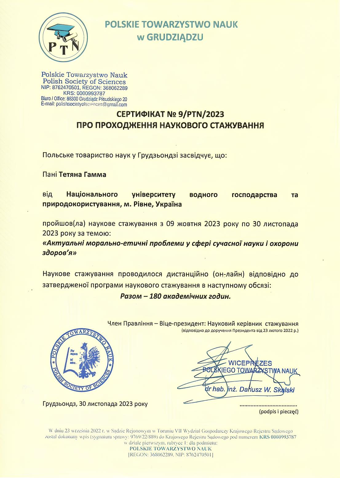 Сертифікат про проходження міжнародного стажування