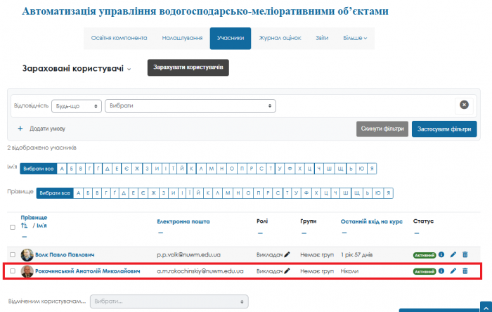 [[Файл: | [[Файл:Рис. 2.13. Викладач в списку учасників курсу.png|700px|міні|центр|Рис. 2.13. Викладач в списку учасників курсу]] | ||